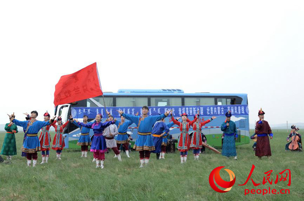 蘇尼特右旗烏蘭牧騎為牧民表演。人民網(wǎng) 賀茂杰攝