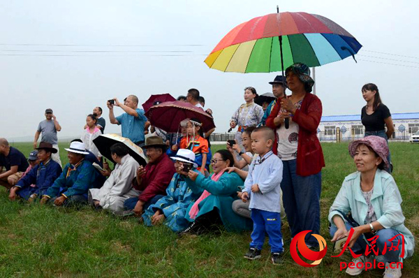 牧民們席地而坐觀看演出。人民網(wǎng) 賀茂杰攝