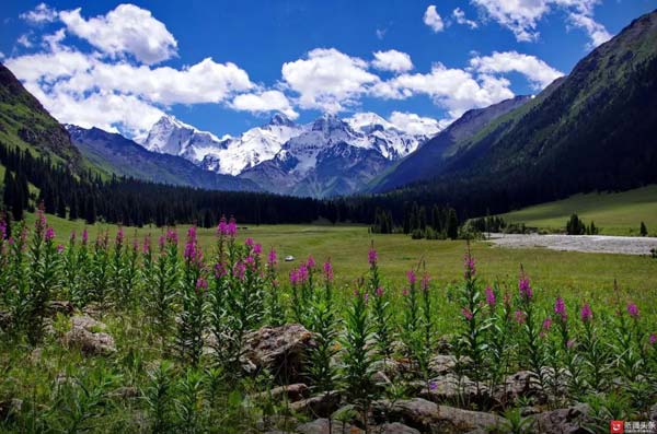 除了新地鄉(xiāng)自身風景宜人外,距離新地鄉(xiāng)約10公里的花兒溝景區(qū)也美如仙境,是新疆著名的高山草甸之一,尤其在每年6月至8月,藏于天山深處的花兒溝漫山遍野的鮮花更是爭奇斗艷。