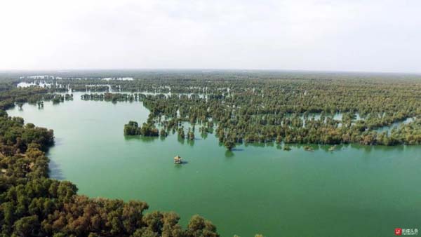 補水后的輪臺縣胡楊林公園。圖/塔里木河流域管理局