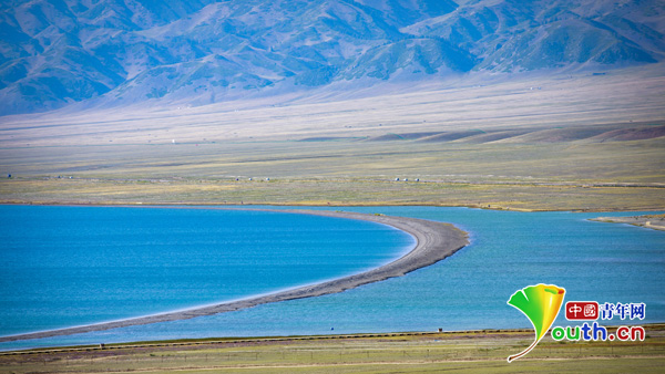 航拍賽里木湖。央視網(wǎng)記者 邢明 攝