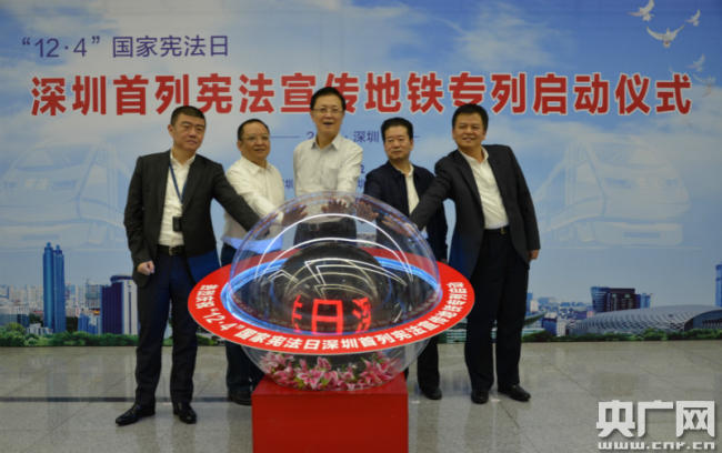 央廣網(wǎng)深圳12月4日消息(記者黃倩 通訊員司新宣)昨天(3日)下午,在第五個(gè)“12·4”國(guó)家憲法日來(lái)臨之際,深圳市普法辦、深圳市司法局、深圳市國(guó)資委和深圳市地鐵集團(tuán)有限公司在深圳地鐵二號(hào)線開啟了深圳首列憲法宣傳專列,同時(shí)還在地鐵九號(hào)線開啟了“掃黑除惡”普法宣傳專列。