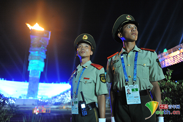 當(dāng)游動的火龍沿著“青春大道”匯聚到“書山”造型的主火炬塔,火炬塔下的支隊副政委劉懿終于長舒了一口氣。從接受開幕式安保任務(wù)起,他就沒回過家,作為前指揮員的劉懿與大隊、中隊主官到各個點上反復(fù)研究執(zhí)勤方案,確定兵力部署。