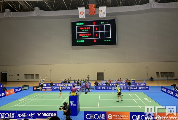 第一場男雙比賽,廈門特房派出劉成/韓呈愷對陣浙江能源周磊崎/汪浩天,廈門隊以較好的競技狀態(tài)分別以15:9,15:8,輕松連下兩城,幫主隊取得開門紅。