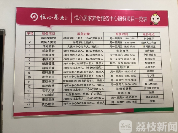 中心的養(yǎng)老服務(wù)項(xiàng)目表