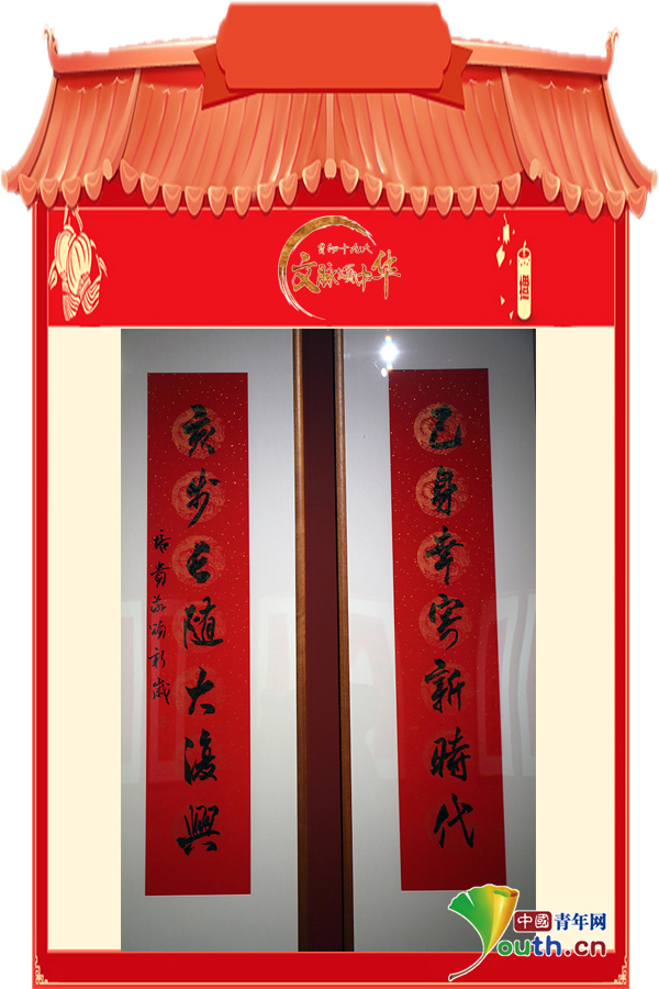 楹聯(lián)“己身幸寄新時(shí)代,亥步長(zhǎng)隨大復(fù)興”。中國(guó)青年網(wǎng)記者葉婉瑩 攝