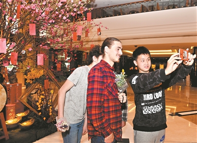 “歡迎您的到來!”當來自法國的文森特和兒子們出現(xiàn)在酒店大堂時,等候多時的楊惠燕和丈夫游明雪、兒子游卓然便熱情地迎了上去。剛剛結(jié)束歐洲游行程的楊惠燕一家2月2日下午剛抵達廣州,還沒來得及倒時差,放下行李就出門采購年夜飯食材和禮品了!拔覀兂Π滋於家阃腿送獬鲇瓮,所以年夜飯要提前準備,今天晚上我們就會把菜先全部配好!