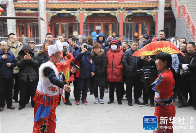 ↑2月10日,民間藝人在山西大同市潘家園古玩市場表演二人臺。(任雪峰 攝)