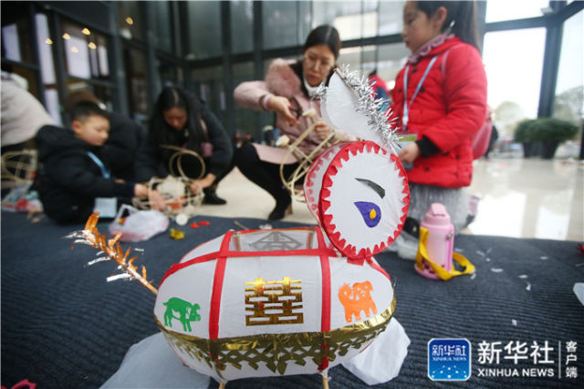 ↑2月10日,在江蘇南通中華慈善博物館舉行的“親子做花燈 快樂迎元宵”活動現(xiàn)場,家長帶著孩子一起制作花燈。 (徐培欽 攝)