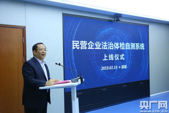 央廣網(wǎng)深圳2月19日消息(記者黃倩 通訊員司新宣)深圳市司法局今天(19日)舉行“民營企業(yè)法治體檢自測(cè)系統(tǒng)”上線儀式,在全國率先推出普惠式、可選擇、便捷化的“民營企業(yè)法治體檢自測(cè)系統(tǒng)”。這意味著,即日起民營企業(yè)有了自己的法治“家庭醫(yī)生”,通過該系統(tǒng)可智能檢測(cè)涉訴風(fēng)險(xiǎn)。