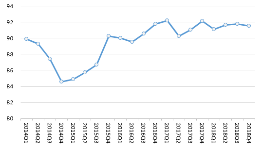 八是全國消費(fèi)維權(quán)指數(shù)保持高位。2018年,全國消費(fèi)維權(quán)指數(shù)平均為91.53,較去年同期增長(zhǎng)了0.11個(gè)點(diǎn),與五年平均值相比,增長(zhǎng)了1.9個(gè)點(diǎn)。全國消費(fèi)維權(quán)指數(shù)小幅增長(zhǎng),保持在高位,表明在我國經(jīng)濟(jì)總體平穩(wěn)、穩(wěn)中有進(jìn)的發(fā)展態(tài)勢(shì)下,消費(fèi)環(huán)境持續(xù)向好。