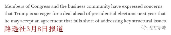 據(jù)路透社3月8日?qǐng)?bào)道,美國(guó)國(guó)會(huì)議員和商界人士擔(dān)心特朗普為了在明年的大選中獲勝,急于跟中國(guó)達(dá)成貿(mào)易協(xié)議,懷疑他可能接受一項(xiàng)未能真正解決問(wèn)題的協(xié)議。對(duì)此,白宮貿(mào)易顧問(wèn)威萊姆斯否認(rèn)稱,擔(dān)心特朗普接受一項(xiàng)糟糕的對(duì)華貿(mào)易協(xié)議是“完全錯(cuò)誤的”。