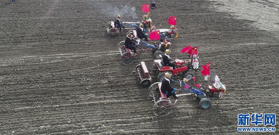 16日,西藏山南市乃東區(qū)克松社區(qū)男女老幼身著節(jié)日盛裝,駕著一輛輛由彩旗、花朵裝扮一新的拖拉機(jī),涌向待墾的農(nóng)田,人們載歌載舞迎來(lái)一年一度的開(kāi)耕儀式。