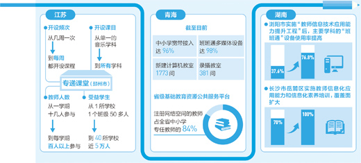 然而,要充分發(fā)揮教育信息化的優(yōu)勢(shì),還需實(shí)現(xiàn)信息化手段從“用起來(lái)”到“用得好”轉(zhuǎn)變。這就需要依靠培訓(xùn),使教育管理部門和一線師生的信息化素養(yǎng)同步提升。湖南多地實(shí)行四級(jí)培訓(xùn)制度:通過(guò)“國(guó)培計(jì)劃”等,培訓(xùn)中小學(xué)校長(zhǎng)及教育主管部門人員;通過(guò)湖南省中小學(xué)教師信息技術(shù)應(yīng)用能力提升工程,培訓(xùn)信息技術(shù)骨干教師和專任骨干教師;通過(guò)組織電化教育館及高校等單位的專家學(xué)者赴基層,培訓(xùn)教育信息化基礎(chǔ)教師;培育出來(lái)的“種子教師”,為所在學(xué)校的科任教師普及教育信息化知識(shí)。