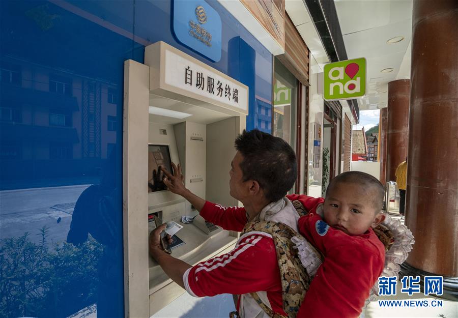 4月13日,云南省貢山縣獨(dú)龍江鄉(xiāng)村民在自助終端上辦理電信業(yè)務(wù)。新華社記者江文耀攝
