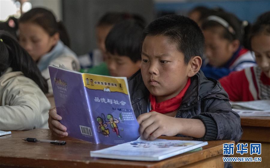 4月13日,云南省貢山縣獨(dú)龍江鄉(xiāng)中心小學(xué)的孩子們在上課。 新華社記者江文耀攝