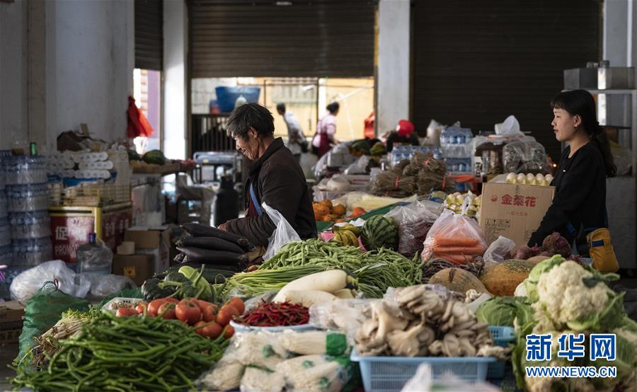 4月13日,云南省貢山縣獨(dú)龍江鄉(xiāng)農(nóng)貿(mào)市場里有各種從山外運(yùn)來的新鮮蔬菜。新華社記者江文耀攝