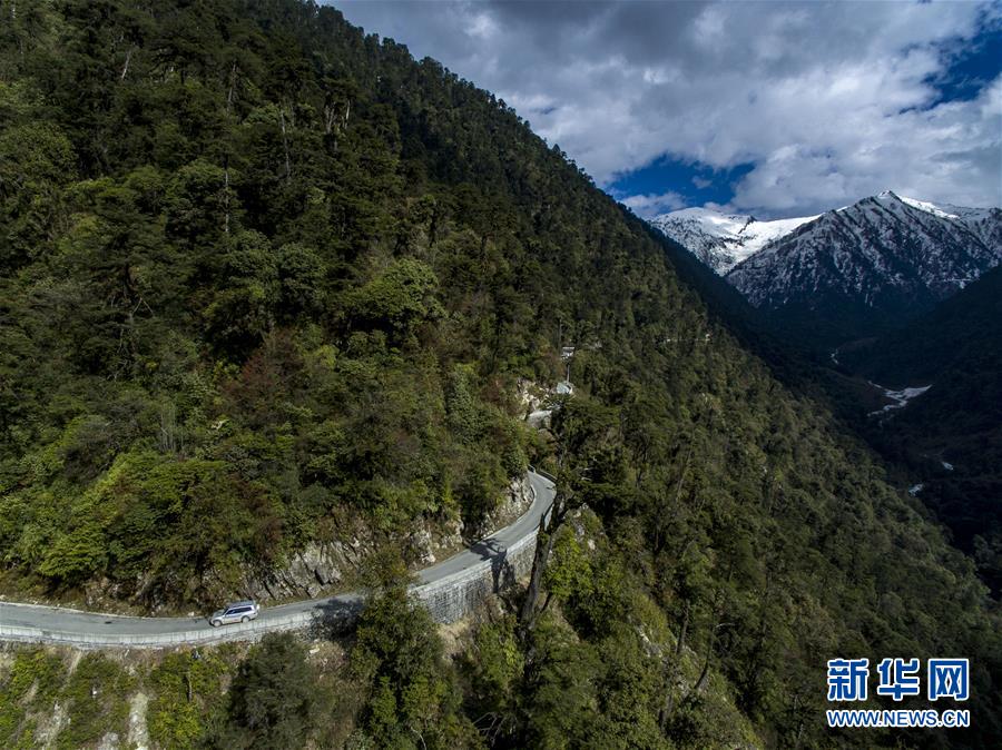這是4月13日無人機(jī)拍攝的貢山縣通往獨(dú)龍江鄉(xiāng)的公路。 新華社記者江文耀攝
