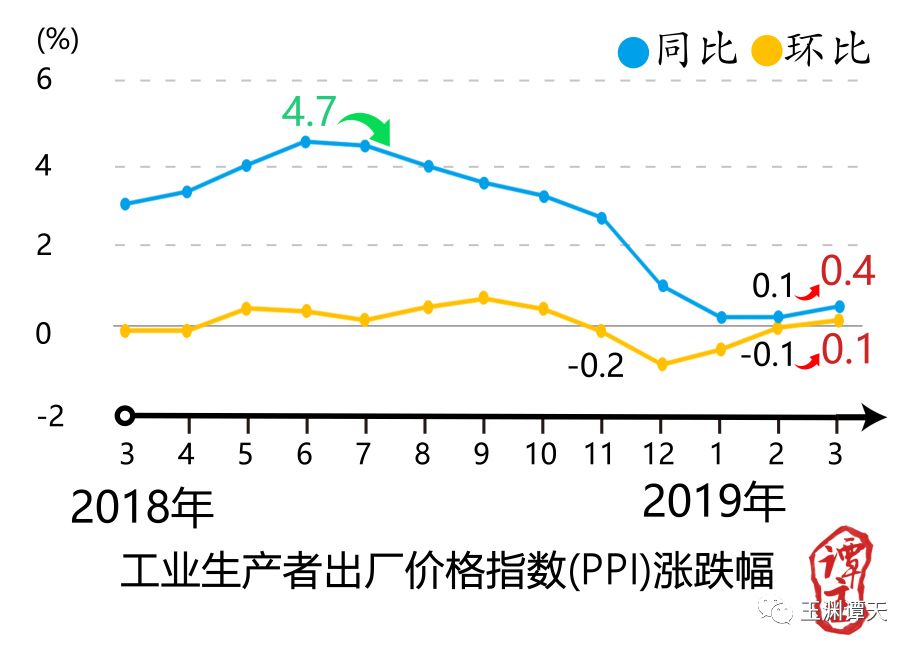 看看3月份的工業(yè)品價(jià)格(就是所謂的工業(yè)生產(chǎn)者出廠價(jià)格指數(shù)),這個(gè)指數(shù)同比上漲0.4%,環(huán)比漲了0.1%,說明工業(yè)領(lǐng)域的價(jià)格正在回升。