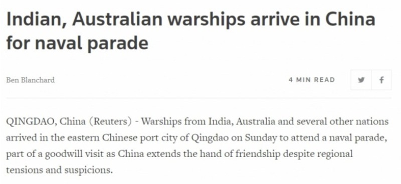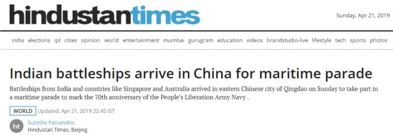 印度駐華使館稱,印度軍艦參加中國人民解放軍海軍閱兵式,是深化印中兩軍關(guān)系的努力之一,符合兩國領(lǐng)導(dǎo)人的戰(zhàn)略指導(dǎo)。預(yù)計(jì)本次活動(dòng)將進(jìn)一步推進(jìn)兩軍增進(jìn)互信和理解的進(jìn)程。