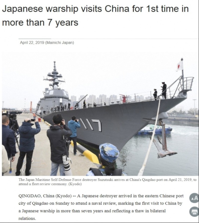 日本共同社21日報(bào)道,日本海上自衛(wèi)隊(duì)“涼月”號(hào)驅(qū)逐艦21日抵達(dá)青島港。這是海上自衛(wèi)隊(duì)艦艇自2011年12月以來時(shí)隔約7年半再次訪華,也是去年10月日中首腦會(huì)談商定的兩國艦艇互訪的一環(huán)。此舉旨在促進(jìn)防衛(wèi)交流以構(gòu)建信賴關(guān)系。