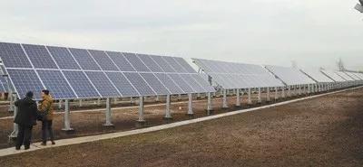 △中國援建的哈薩克斯坦太陽能及風能電站投入使用,圖為太陽能電站一角。