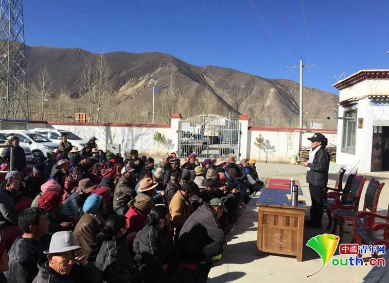 白瑪央金正在村里組織的大會(huì)上發(fā)言,講述教育的重要性,她決定對(duì)家鄉(xiāng)父老鄉(xiāng)親進(jìn)行一次“思想教育”。資料圖