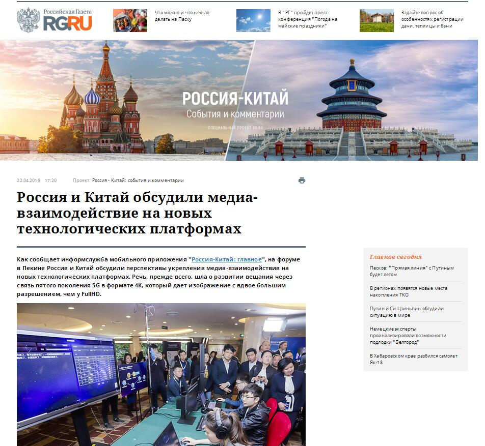 《俄羅斯報》官網刊登中央廣播電視總臺評論《中俄致力于加強在“一帶一路”框架下新技術領域媒體合作》