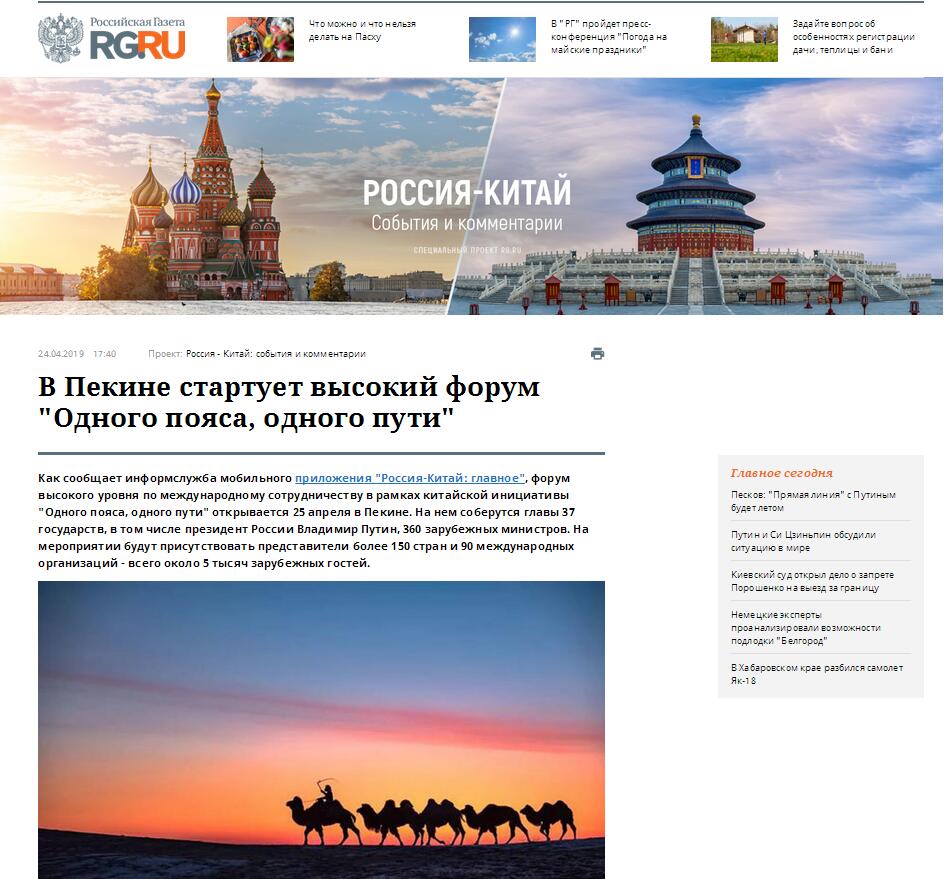 《俄羅斯報》官網刊登中央廣播電視總臺評論《全球聚焦第二屆“一帶一路”高峰論壇》