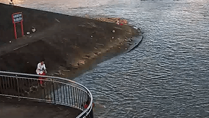 聽到孩子大聲呼救,劉先生馬上沖到河邊想把他拉上岸,卻也因河堤濕滑一同落入了水中,并被水浪推離了岸邊。