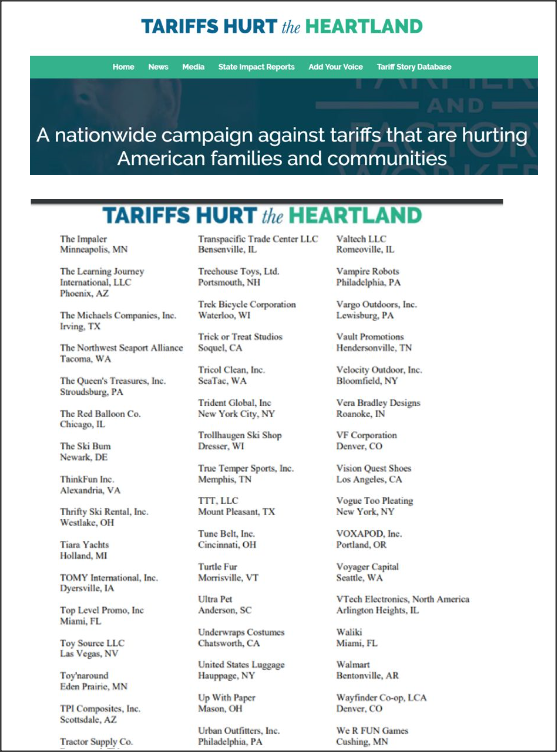 路透社則在報道中進一步介紹說,這封600多家美國企業(yè)寫給特朗普的信,源自一項名為“關(guān)稅損害美國核心領(lǐng)域”(Tariffs Hurt the Heartland)的活動。該活動是由美國150多個代表農(nóng)業(yè)、制造業(yè)、零售業(yè)和科技產(chǎn)業(yè)的行業(yè)組織共同發(fā)起的,旨在要求美國特朗普政府停止揮舞關(guān)稅大棒的錯誤行為,及早結(jié)束貿(mào)易沖突。
