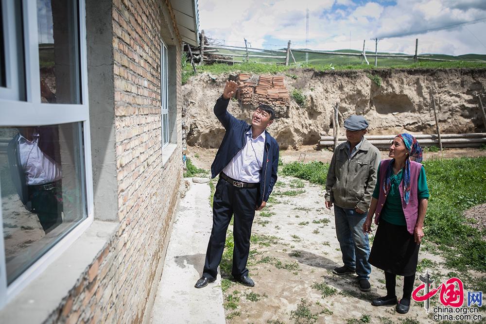 隨著艾爾坎兩個兒子長大,家中兩間房已不夠用,2015年的一天,艾爾坎和兒子交流說想再蓋兩間房時,恰巧被努爾江聽到?墒且荒旰,房子仍然沒動靜,努爾江覺得是家里有困難了。2016年,努爾江組織了6個黨員一起去艾爾坎家里幫忙,大家各自帶來工具,開來卡車?yán)、運石頭……從挖地基,搬石頭、搬水泥、和泥巴、砌墻,幾個人干了5天,兩間磚瓦房蓋起來了,而艾爾坎一家只提供磚塊,其他由黨員們分擔(dān)。中國網(wǎng)記者 倫曉璇 攝