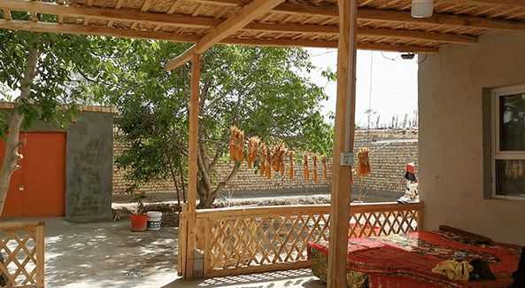 米熱拜·阿布拉:“現(xiàn)在種的有西紅柿、辣椒,除了自己吃,還要拿到巴扎上去賣。計(jì)劃以后庭院里多種些鮮花,我很喜歡現(xiàn)在的生活,要繼續(xù)保持下去,跟以前的生活方式說(shuō)再見(jiàn)!