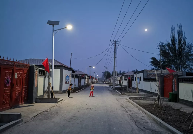 路燈點(diǎn)亮陳老七村的夜晚(吳卓勝 攝)