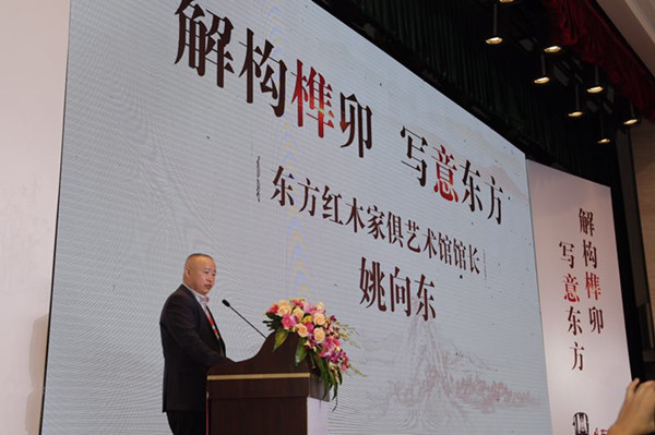 東方紅木家俱藝術(shù)館館長姚向東致辭(主辦方供圖)