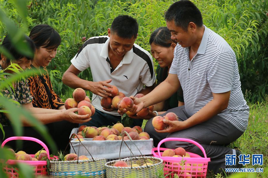 2019年7月18日,河南省光山縣馬畈鎮(zhèn)太平村瑞全家庭農(nóng)場,村民們在桃園內(nèi)收獲黃金蜜黃桃。