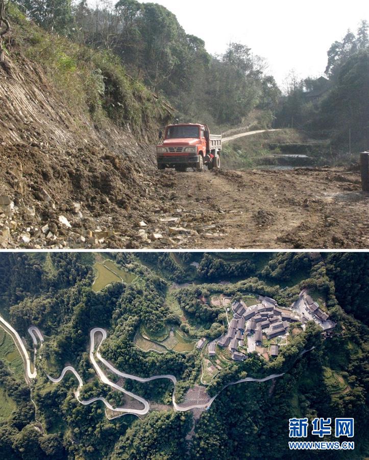 上圖:脫貧前的花垣縣十八洞村進(jìn)村道路。攝于2011年12月。下圖:現(xiàn)在的花垣縣十八洞村及其進(jìn)村道路。攝于2019年9月。