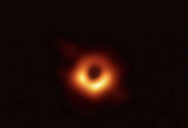 2019年4月10日,包括中國在內(nèi),全球多地天文學家同步公布了“事件視界望遠鏡”(EHT)項目的第一項重大成果:人類有史以來獲得首張黑洞照片。該黑洞位于室女座一個巨橢圓星系M87的中心,距離地球5500萬光年,質(zhì)量約為太陽的65億倍。它的核心區(qū)域存在一個陰影,周圍環(huán)繞一個新月狀光環(huán)。