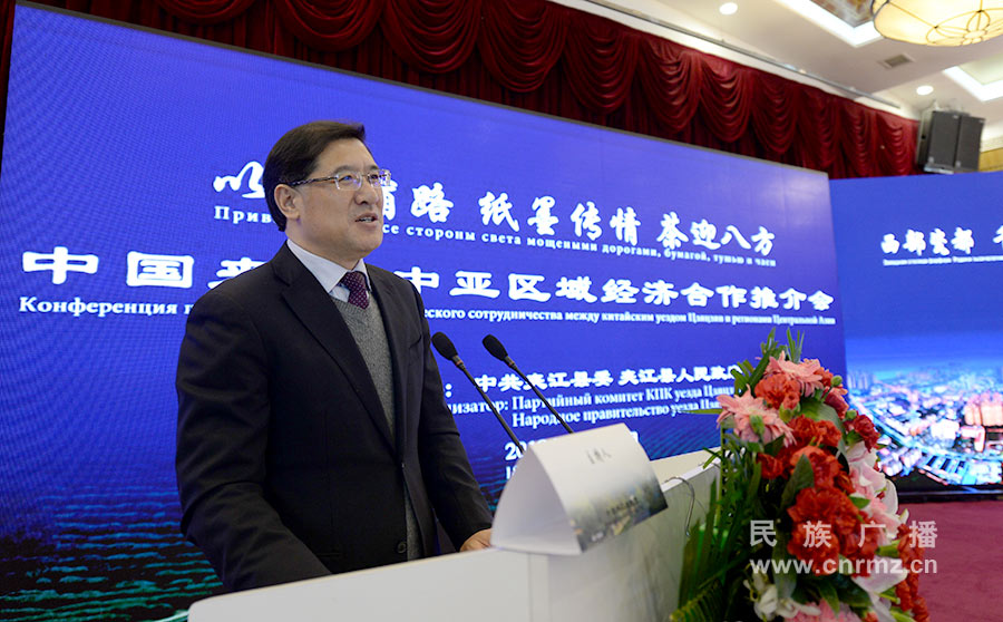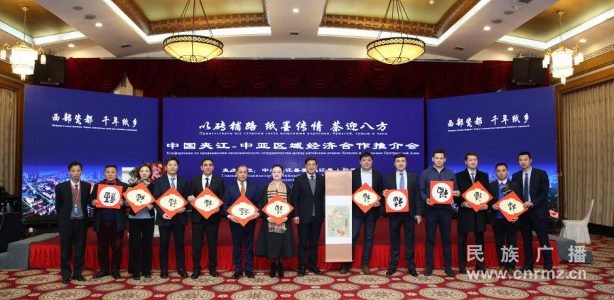 民族廣播網(wǎng)北京12月18日消息 12月18日,中國夾江-中亞區(qū)域經(jīng)濟(jì)合作推介會在北京舉行。哈薩克斯坦、烏茲別克斯坦、吉爾吉斯斯坦、土庫曼斯坦、塔吉克斯坦駐華參贊、駐華企業(yè)等有關(guān)負(fù)責(zé)人出席推介會。本次推介會由四川省夾江縣主辦,主題為“以磚鋪路、紙墨傳情、茶迎八方”,由夾江縣委常委、宣傳部長商詠梅主持。