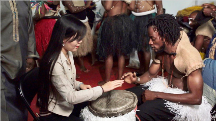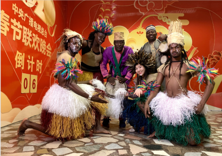 總臺法語網(wǎng)紅主播禎子、慧慧在現(xiàn)場向喀麥隆舞蹈團學(xué)起了非洲舞、打起了非洲鼓。團長告訴主播,他們的服飾和化妝都源自生活,舞蹈動作更是原汁原味,希望通過春晚的舞臺把心中的喜悅分享給全世界。