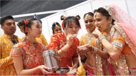總臺泰米爾語網(wǎng)紅主播小小、伊伊給印度寶萊塢舞蹈團“泰姬快車”的舞蹈家們帶去了剛出鍋的餃子,請他們品嘗一下“中國年的味道”。