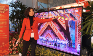 總臺泰語網(wǎng)紅主播阿藍(lán)在彩排現(xiàn)場親身體驗8K和“裸眼3D”的觀看效果。