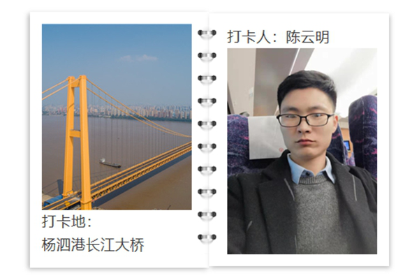 “我叫陳云明,是中建三局的員工,大學(xué)學(xué)的是土木路橋?qū)I(yè)。我曾參與武漢常青路項目,深知楊泗港長江大橋建設(shè)的難度。楊泗港長江大橋設(shè)計主跨1700米,河水里沒有橋墩支撐,難度極大。楊泗港長江大橋的鋼梁架設(shè)最難,1700米、5萬噸的鋼梁,制造、運輸、吊裝……整個過程無縫鏈接,36天就把整個鋼梁架通,創(chuàng)造了長江上的一個架梁奇跡!很多市民都震撼了:怎么突然出現(xiàn)一座橋?”打卡人陳云明說。