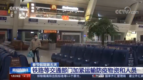 央視網(wǎng)消息:今天(28日)是春節(jié)假期第五天,全國(guó)交通客流繼續(xù)下降,鐵路等交通部門開辟綠色通道,加緊運(yùn)輸防疫物資和人員。