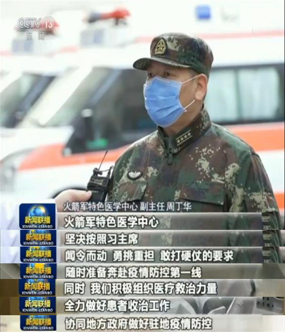 習(xí)主席向全軍發(fā)出的號令,給全軍官兵以極大鼓舞和有力動員。疫情發(fā)生后,人民軍隊(duì)堅(jiān)決落實(shí)習(xí)主席重要指示,在黨中央和中央軍委統(tǒng)一指揮下,聞令而出、迅疾行動。我軍迅速啟動聯(lián)防聯(lián)控工作機(jī)制,緊急抽組精兵強(qiáng)將奔赴疫情防控第一線,各項(xiàng)救治工作有力有序有效展開。