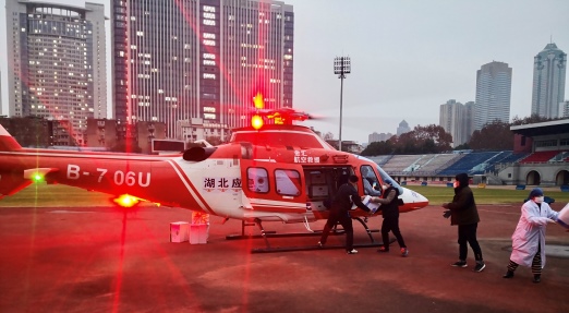 2月1日,青島直升機(jī)航空有限公司兩架米-171直升機(jī)從武漢漢南機(jī)場(chǎng)起飛,執(zhí)行了向宜昌、襄陽(yáng)等地轉(zhuǎn)運(yùn)醫(yī)療物資的任務(wù)。