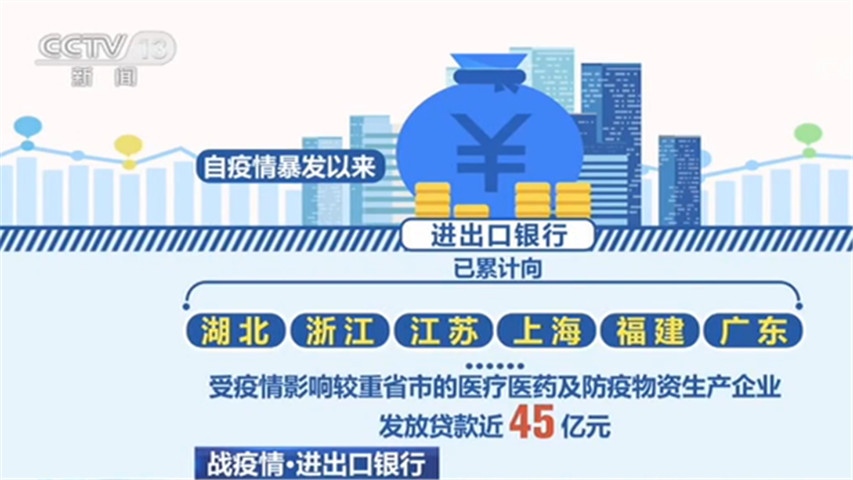 另外,自疫情暴發(fā)以來,進出口銀行已經(jīng)累計向湖北、浙江、江蘇、上海、福建、廣東等受疫情影響較重省市的醫(yī)療醫(yī)藥及防疫物資生產(chǎn)企業(yè)發(fā)放貸款近45億元;同時,發(fā)行30億元抗擊疫情主題債券,募集資金全都用于疫情防控相關領域信貸投放。