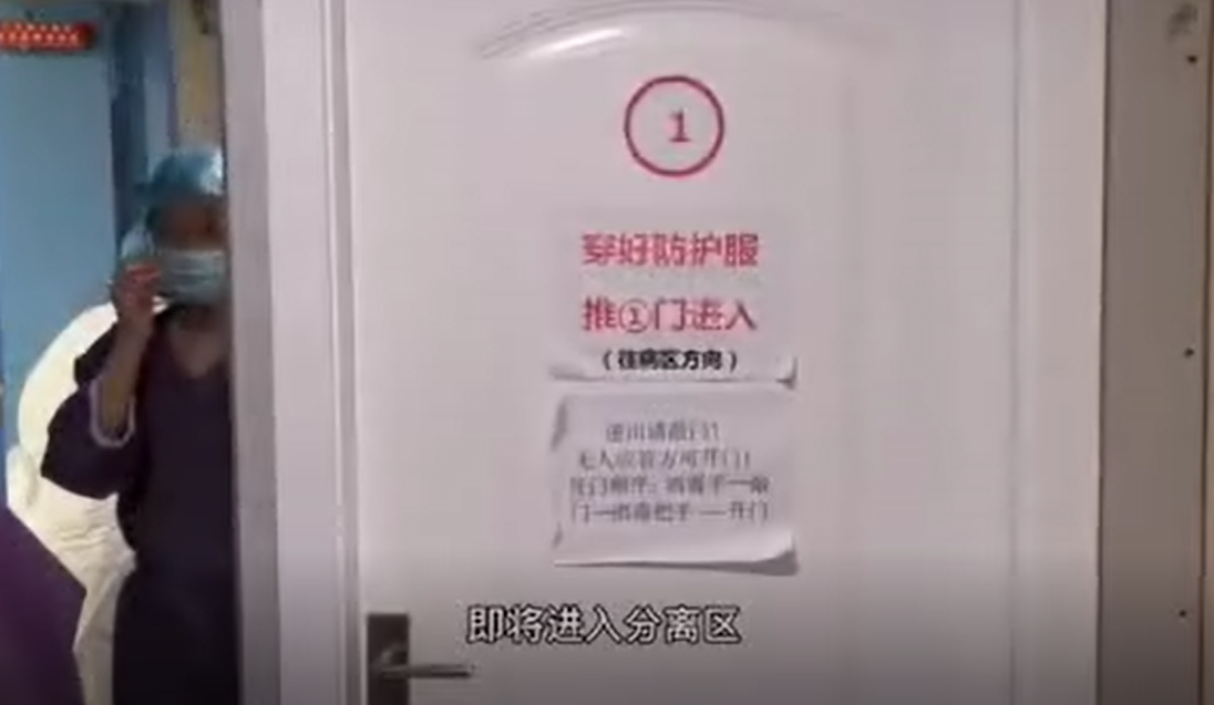 “清潔區(qū)和污染區(qū)之間有一塊玻璃窗,透過玻璃窗可以看到隔離區(qū)的繁忙景象!倍南几锌安AТ皟(nèi)外,兩個世界”。