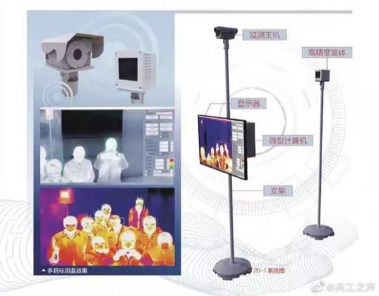 中國(guó)兵器工業(yè)集團(tuán)夜視研究院研制出適用于大范圍人群測(cè)溫的“20-I型紅外發(fā)熱人群快速篩選系統(tǒng)”,采用非接觸式工作模式,具備人臉自動(dòng)檢測(cè)技術(shù),4~10米范圍實(shí)現(xiàn)全自動(dòng)24小時(shí)連續(xù)實(shí)時(shí)測(cè)溫和超溫識(shí)別預(yù)警;測(cè)溫效率每分鐘約500人次,精度±0.3℃。春節(jié)期間緊急安排生產(chǎn),600余支手持測(cè)溫?zé)嵯駜x和在線式測(cè)溫?zé)嵯駜x測(cè)溫鏡頭發(fā)往抗擊疫情第一線;第二批1000余支將于近期完成供貨。