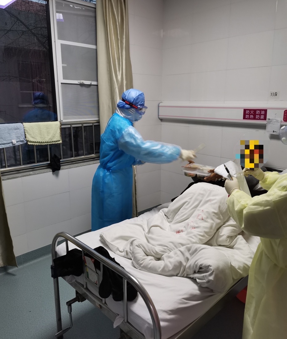 醫(yī)護(hù)人員為病人送飯 受訪者供圖